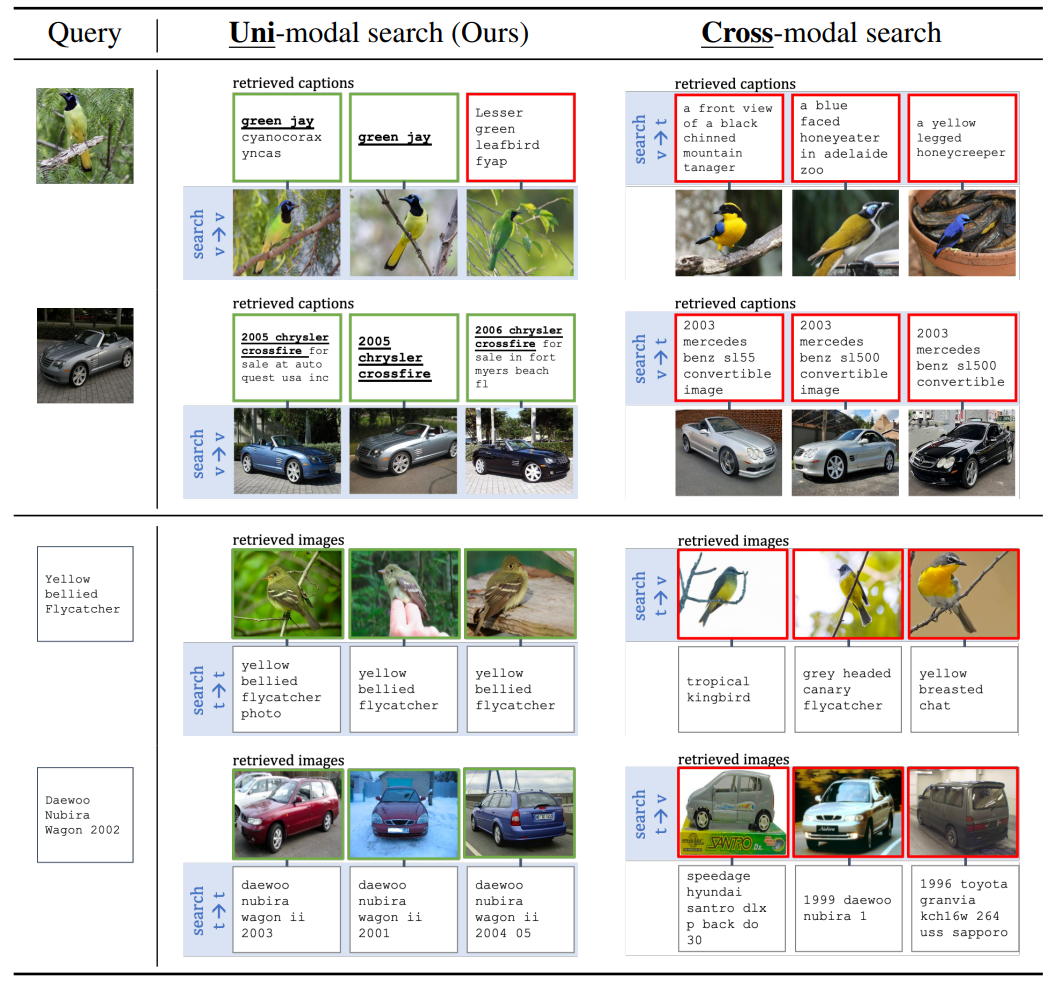 - uni-modal search 가 cross-modal search 보다 낫다고 하네요 허허