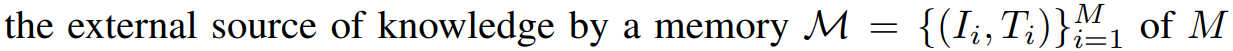 - v(이미지)를 넣으면, 이미지와 연결된 텍스트를 통해서 외부 메모리 M에서 K개의 텍스트 임베딩을 반환해준다.