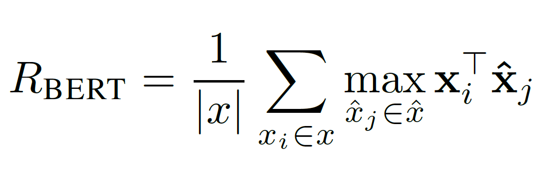 - 정답(reference)의 token 과 예측값(candidate)의 token 사이의 similarity 를 구한다.