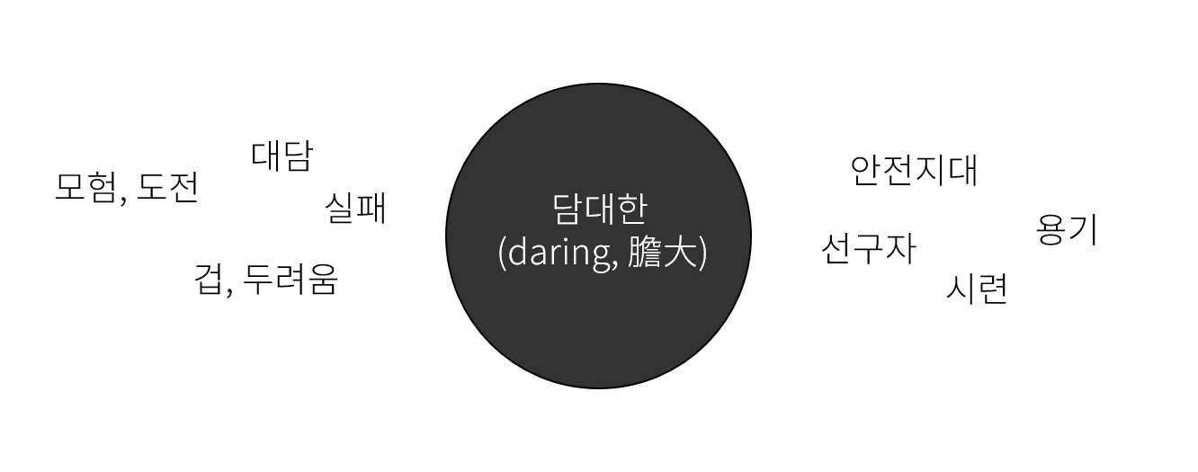 - 담대함이라는 단어가 없어도 담대함이 담긴 글을 찾는다.