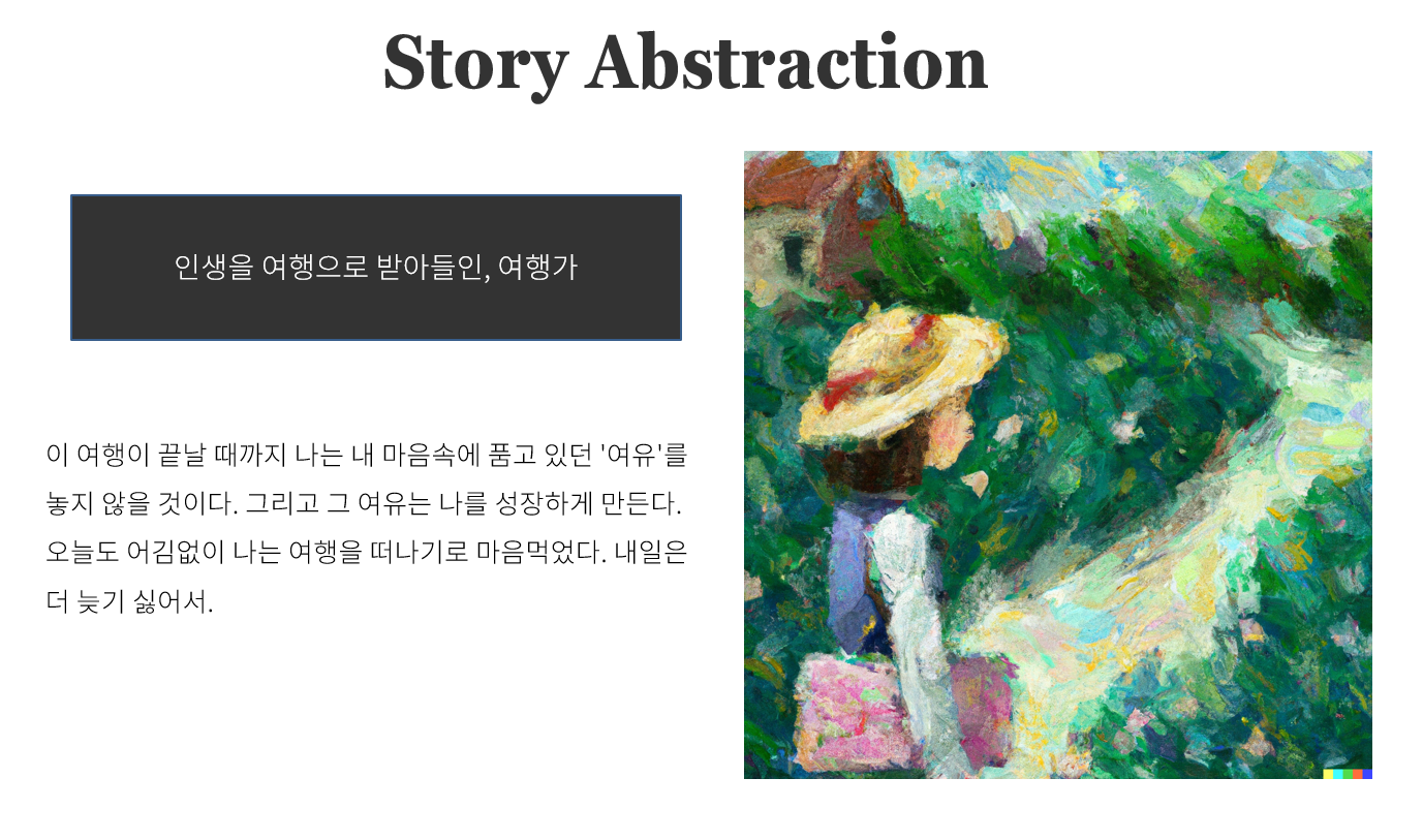 반대로 말하면, 놀라운 AI 기법을 보여준 팀들은 대다수가 수상하지 못했다. 그 점이 처음에는 충격으로 다가왔었다. 하지만 이 대회의 취지는 사람과 AI의 협업 글쓰기라고 말씀하신 걸 보면, 내가 좀 더 자신을 내려놓고 이 대회를 준비했어야 했던 것 같다. 이렇게 글을 쓰며 보니, 배울 점이 많다는 걸 깨달으며 겸손해지면서도 더 성장할 수 있어서 기쁘다.