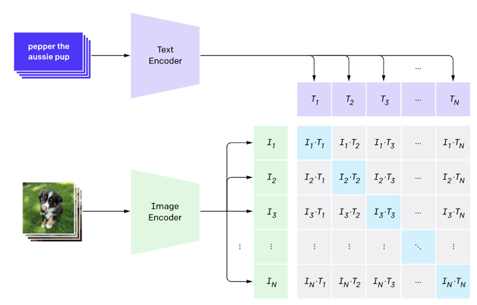 - 그림(이미지)과 일치하는 설명(텍스트)은 유사도를 높게 하고, 나머지는 낮도록 contrastive learning 을 진행한다.
