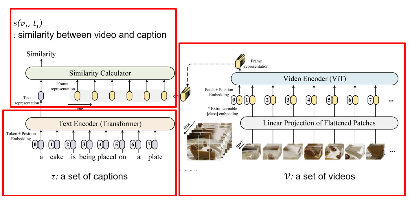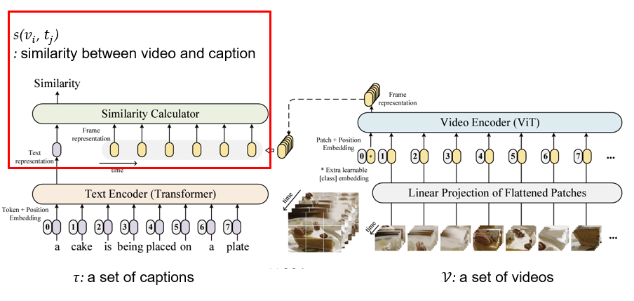 - 위 그림처럼 (video clip, caption) 쌍으로 주어질 때,