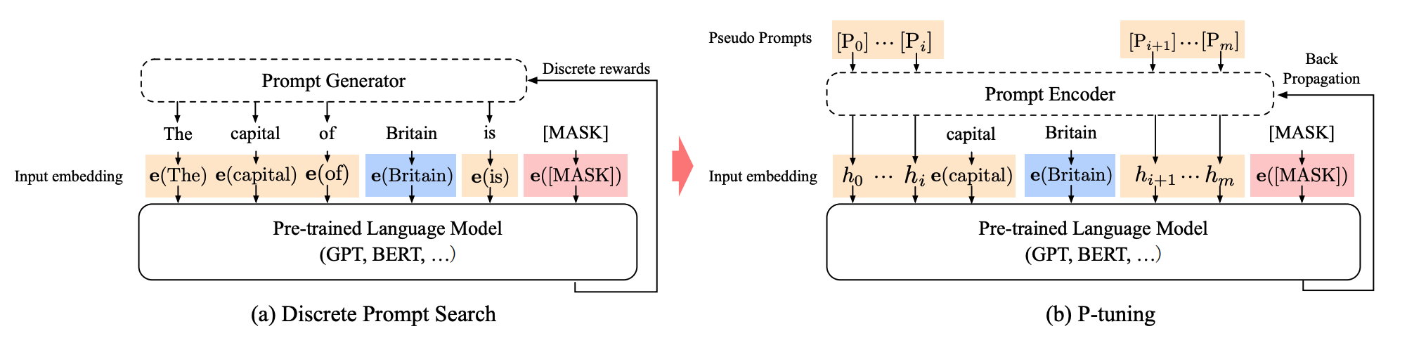 여기까지 봤을 때, 위 그림에서 prompting 으로부터 hard prompt, soft prompt 가 나온다.