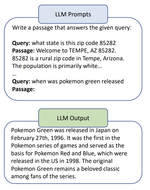 - 그걸 예제 삼아 In Context Learning 을 통해, 내가 알고 싶은 query 의 pseudo-document 를 생성하게 한다.