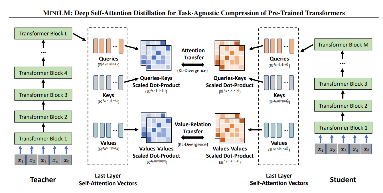 MiniLM: Deep Self-Attention Distillation for Task-Agnostic Compression of Pre-Trained Transformers