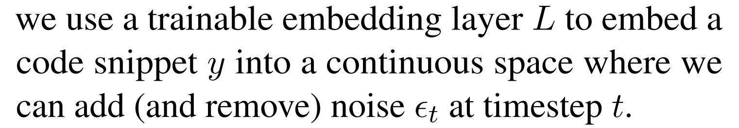 - loss 의 첫번째 항은 diffusion 에서 말하는 noise 를 예측하는 것 같고, 마지막 항은 최종 decoder output 과 정답을 비교해서 loss 를 주는 것 같다. 그런데 가운데 등장한 L(y) 가 뭘까?