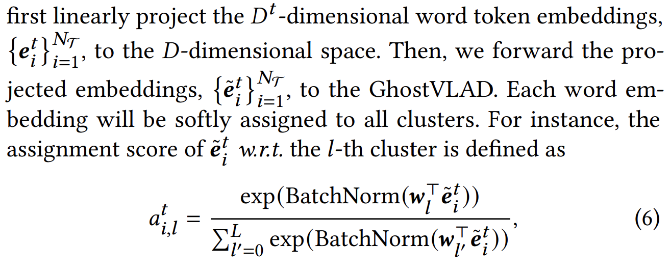 - 우선 비디오도 GhostVLAD를 하지만 각각 진행하는 것을 보인다. 그러면서도 shared 라고 적혀있으니, 파라미터를 공유한다는 점을 알 수 있다.