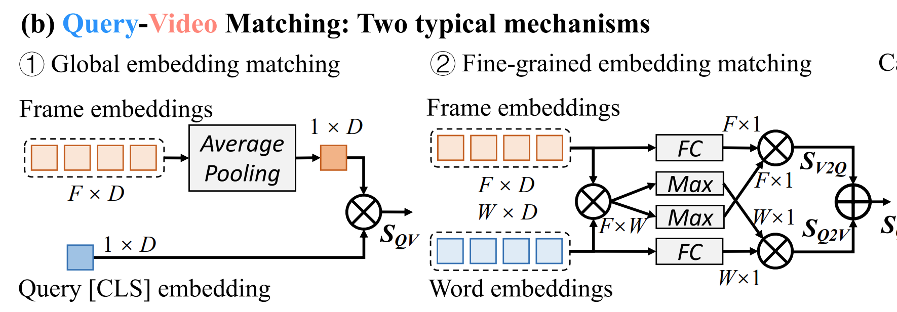 - Global embedding matching: 비디오는 프레임 평균 임베딩을 사용하고, 쿼리는 [CLS] embedding 을 사용한다