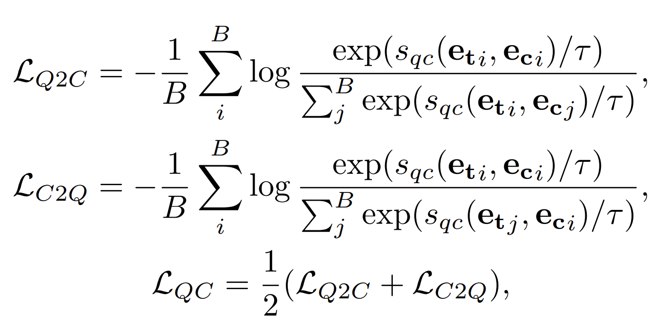- C2Q는 caption 이 주어졌을 때, B개의 query 중 유사도를 구하는 것