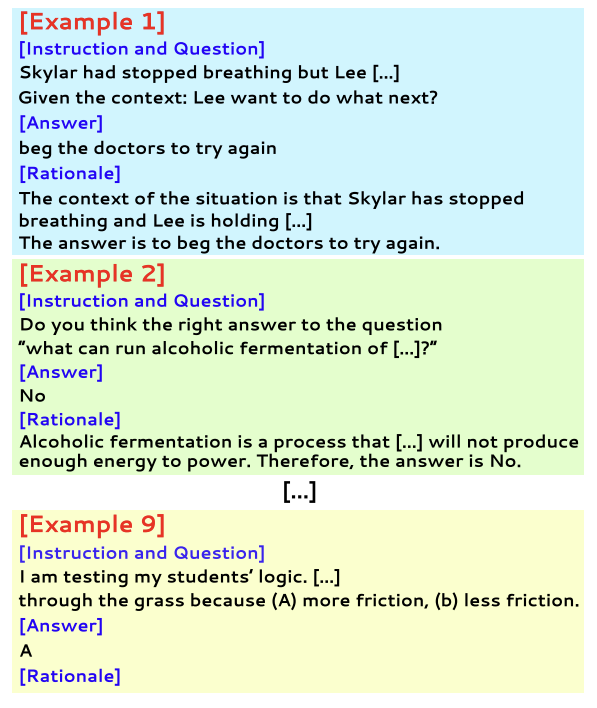 - 위 그림이 8개의 예시를 주고, 마지막 9번째는 직접 근거를 생성하도록 비워둔 프롬프트임.