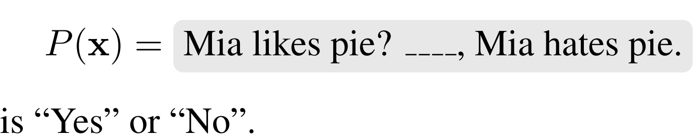 - 참조한 논문에서 가져온 그림인데, 원래는 Yes 가 0, No 가 1이었다면 저 빈칸을 가리고 yes 가 나올 확률과 no 가 나올 확률을 구해서 높은 쪽을 모델이 예측했다고 보는 것이다