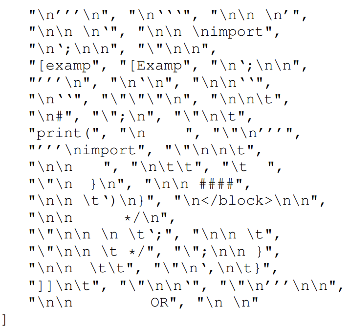 - 위는 코드가 등장하기 직전에 나오는 토큰들이라고 한다.