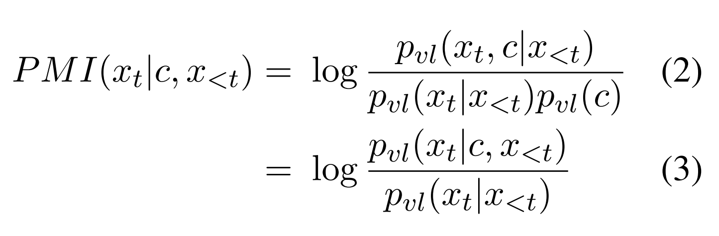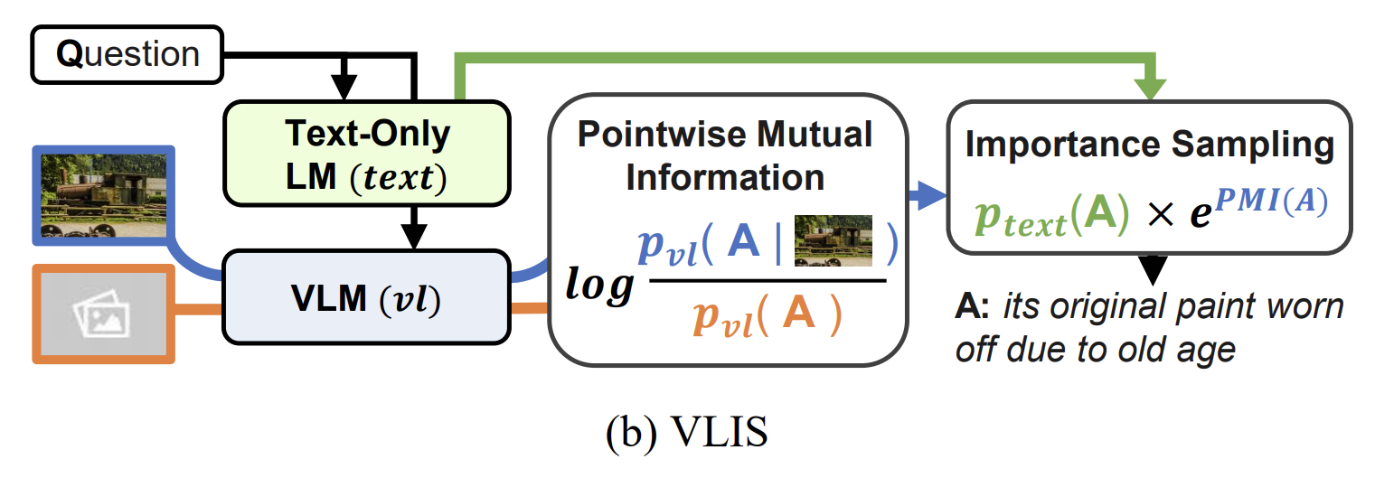 - 위 그림에서 녹색 부분이 Text-Only LM의 분포고, PMI는 VLM에서 구한 것이다