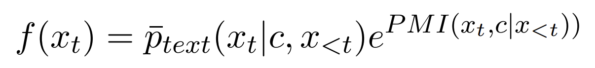 - 원래 텍스트 모델의 분포에 멀티 모달 모델이 속삭이는 셈이다