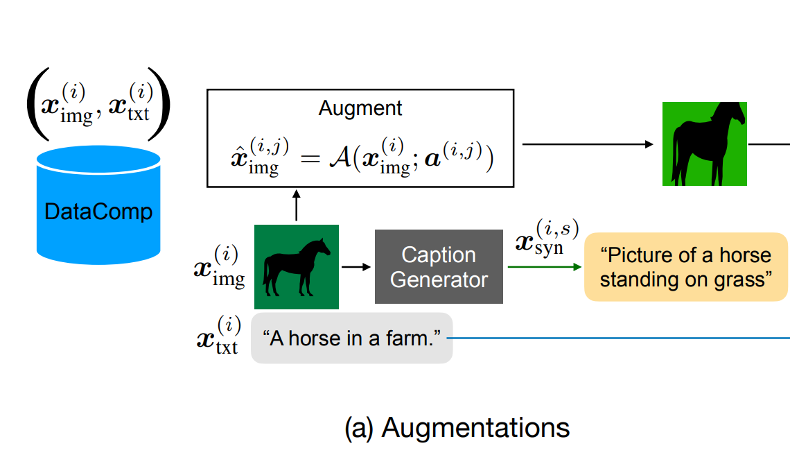 - 자막 증강: CoCa 라는 Captioning Model 을 활용해서 증강한다고 함. 증가개수는 실험쪽에서 다루겠음.