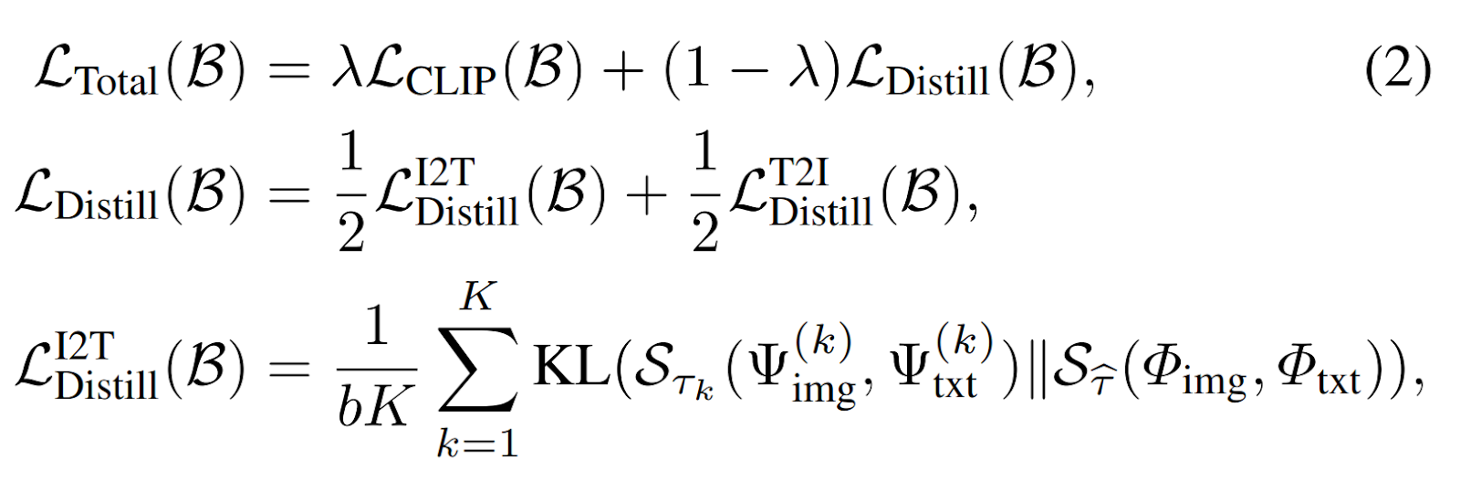 - 이미지 및 텍스트 증강, teacher model embedding 추출, teacher model 유사도 따라잡기 (KL-divergence Loss) 사용